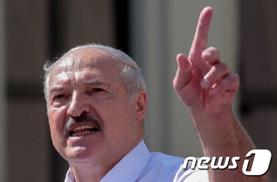 이날 루카셴코 대통령은 시위대가 대통령 관저에서 물러간 뒤 헬기를 타고 관저에 도착한 뒤 손에 소총을 들고 내리는 모습이.